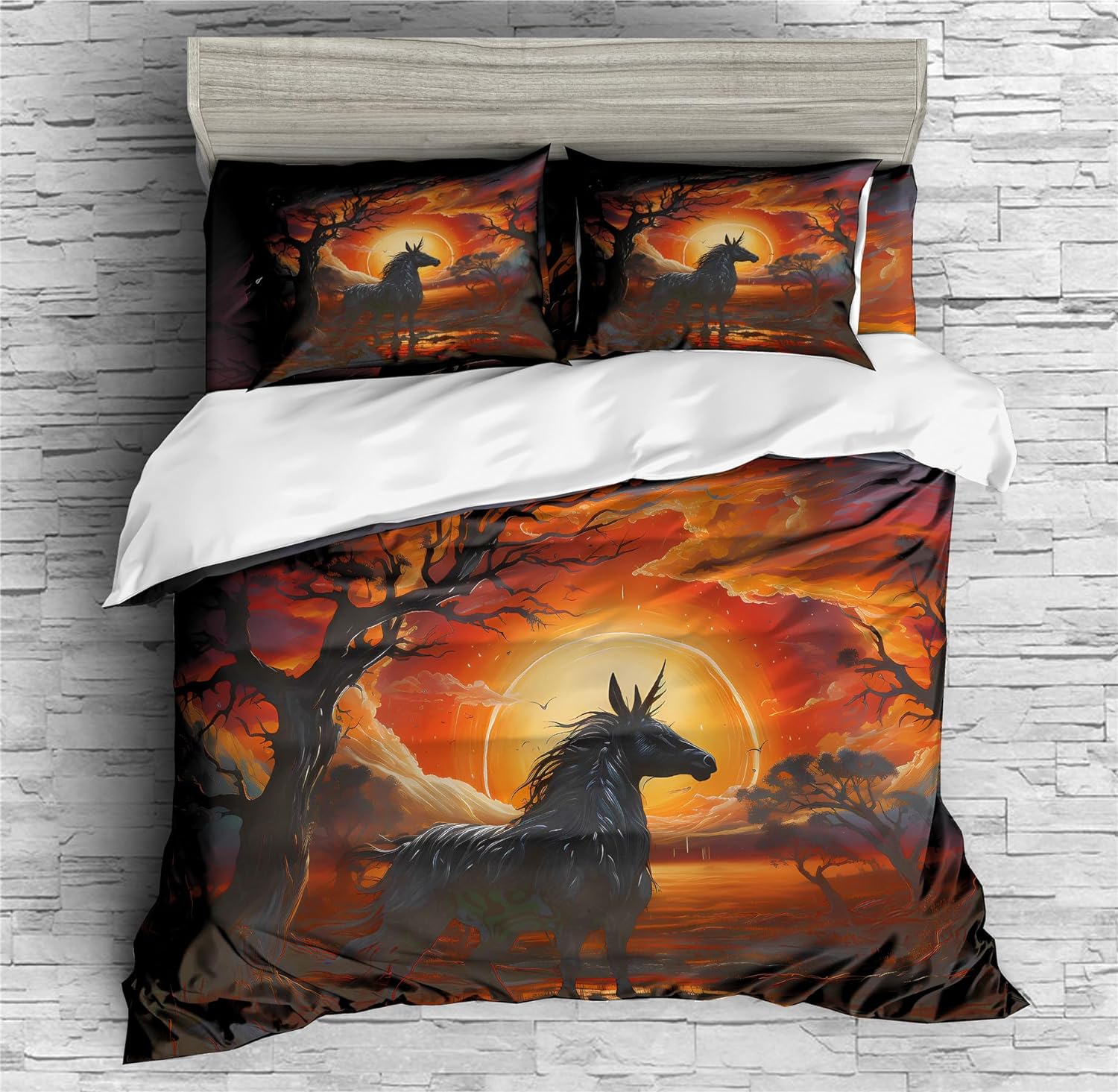 REALIN African Style Unicorns Bedding Black Unicorns Animal Duvet Cover Set Girl Boy Kids Bed Sets 2/3/4PCS Quilt Covers/Sheets/Pillow Shams,Twin/Full/Queen/King (B,Full-200x229cm-4PCS)