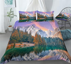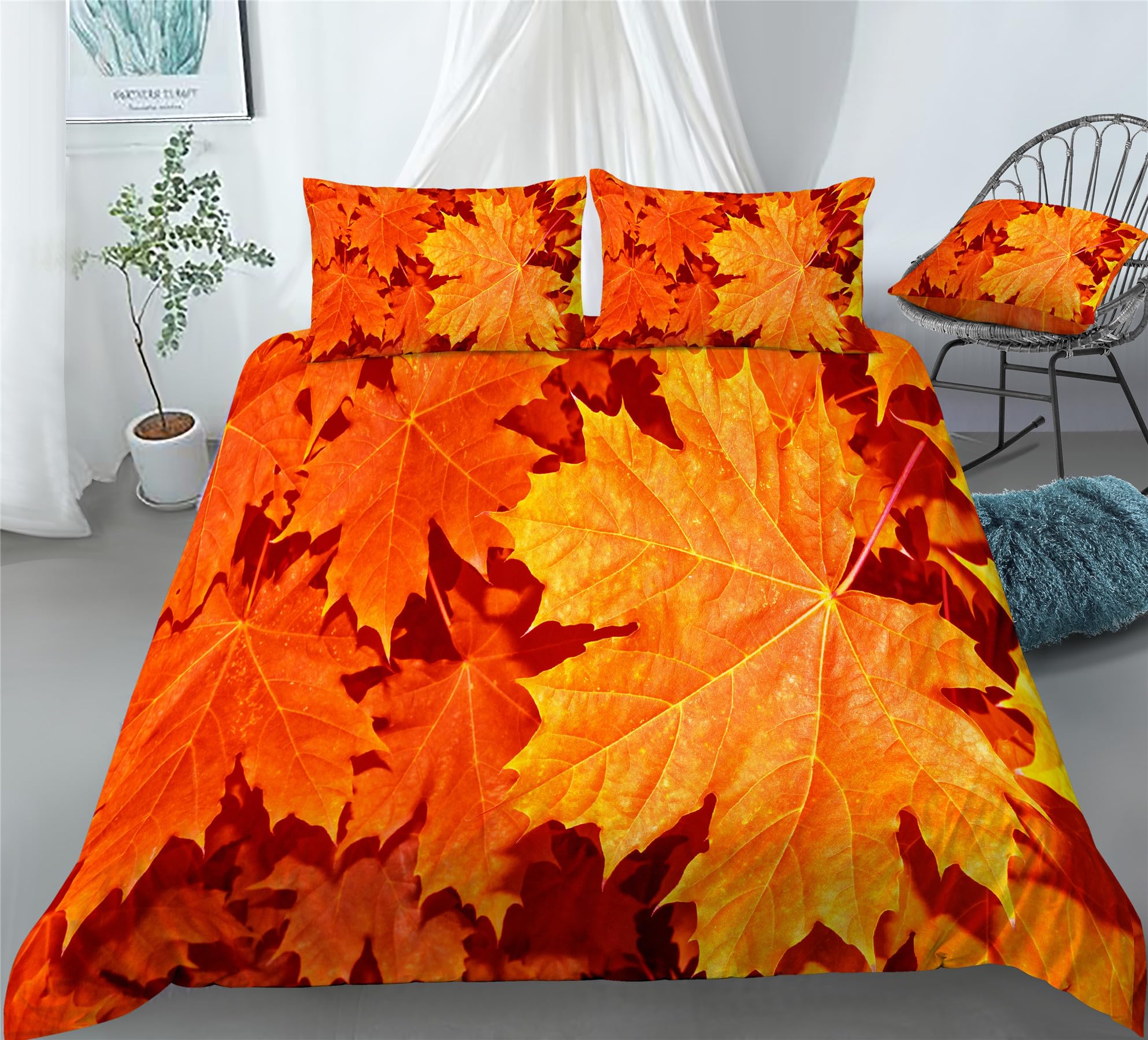 REALIN Autumn Forest Duvet Cover Set Fall Maple Forest Bedding Girl Boy Kids Bed Sets 2/3/4PCS Quilt Covers/Sheets/Pillow Shams,Twin/Full/Queen/King (A,King-229x259cm-3PCS)