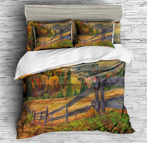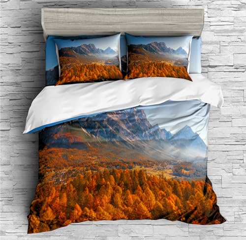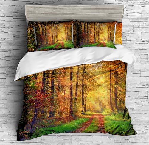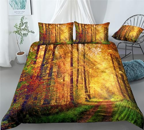 REALIN Autumn Scenery Bedding Forest Autumn Sunshine Duvet Cover Set Girl Boy Kids Bed Sets 2/3/4PCS Quilt Covers/Sheets/Pillow Shams,Twin/Full/Queen/King (B,Full-200x229cm-4PCS)