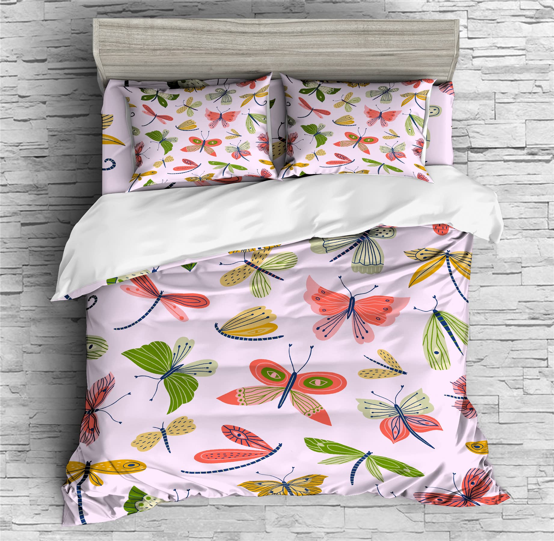 REALIN Butterfly Wings Prints Bedding Butterfly Prints Flowers Duvet Cover Set Girl Boy Kids Bed Sets 2/3/4PCS Quilt Covers/Sheets/Pillow Shams,Twin/Full/Queen/King (B,Twin-172x218cm-3PCS)