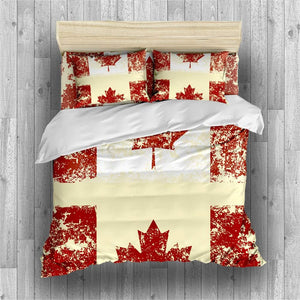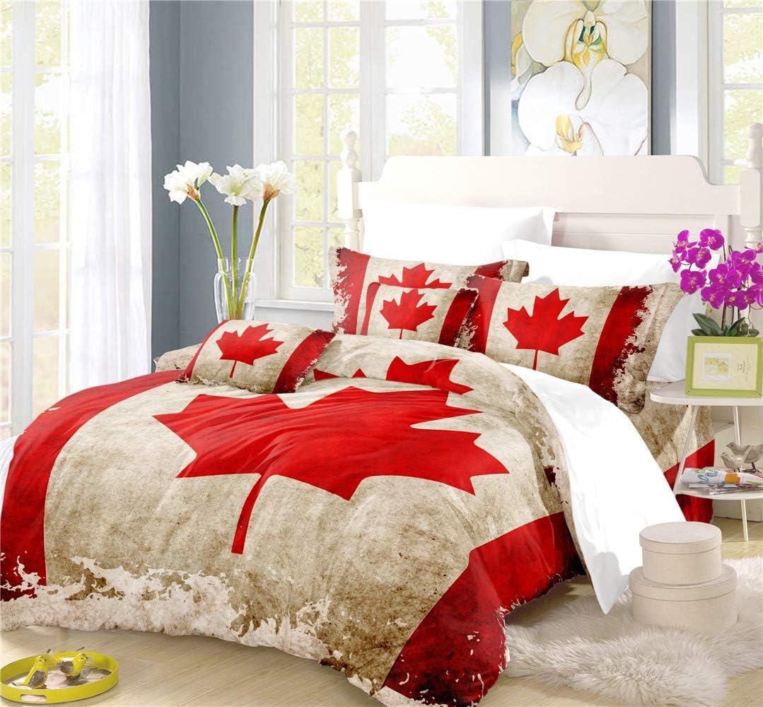 REALIN Canadian Flag Duvet Cover Set Maple Leaf Flag Bedding Retro Old Bed Sets 2/3/4PCS Quilt Covers/Sheets/Pillow Shams,Twin/Full/Queen/King (B,Queen-228x228cm-3PCS)