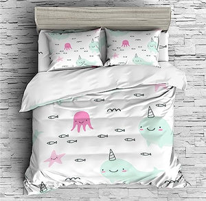 BEAUTIFUL LIFESTYLE:Cute Narwhal Marine Animals, so that each child can not help but want to hold in his arms.Give the colors a dull room needs,our beautiful and well-designed floral patterned duvet covers add brightness and style to your home