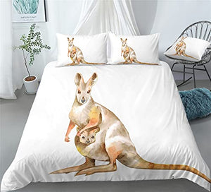 REALIN Cartoon Kangaroo Bedding Kangaroo Australia Animals Duvet Cover Set Girl Boy Kids Bed Sets 2/3/4PCS Quilt Covers/Sheets/Pillow Shams,Twin/Full/Queen/King (A,Full-200x229cm-4PCS)