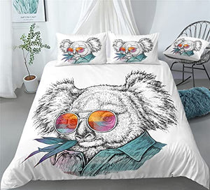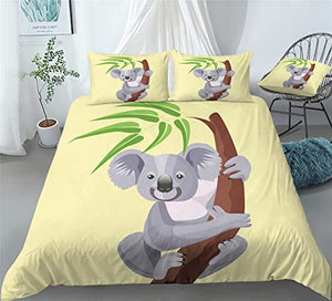 REALIN Cartoon Koala Bedding Cute Koala Wombat Duvet Cover Set Girl Boy Kids Bed Sets 2/3/4PCS Quilt Covers/Sheets/Pillow Shams,Twin/Full/Queen/King (A,Twin-172x218cm-4PCS)
