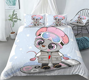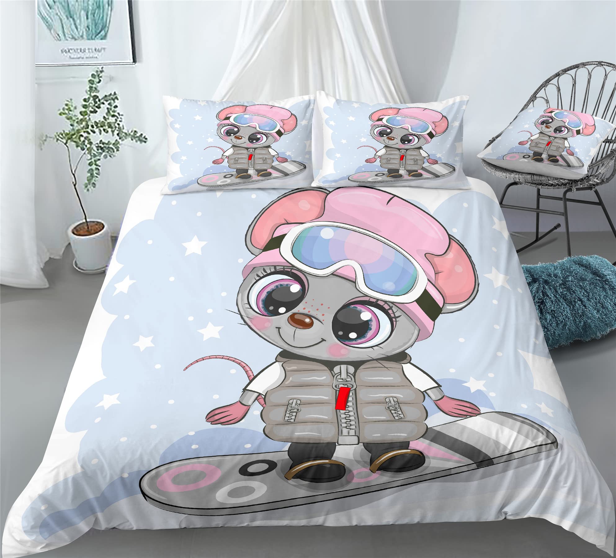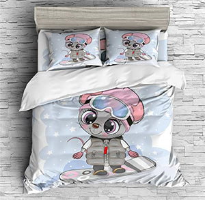 REALIN Cartoon Mouse Print Duvet Cover Set Cute Rats Animal Print Bedding Girl Boy Kids Bed Sets 2/3/4PCS Quilt Covers/Sheets/Pillow Shams,Twin/Full/Queen/King (B,Full-200x229cm-3PCS)