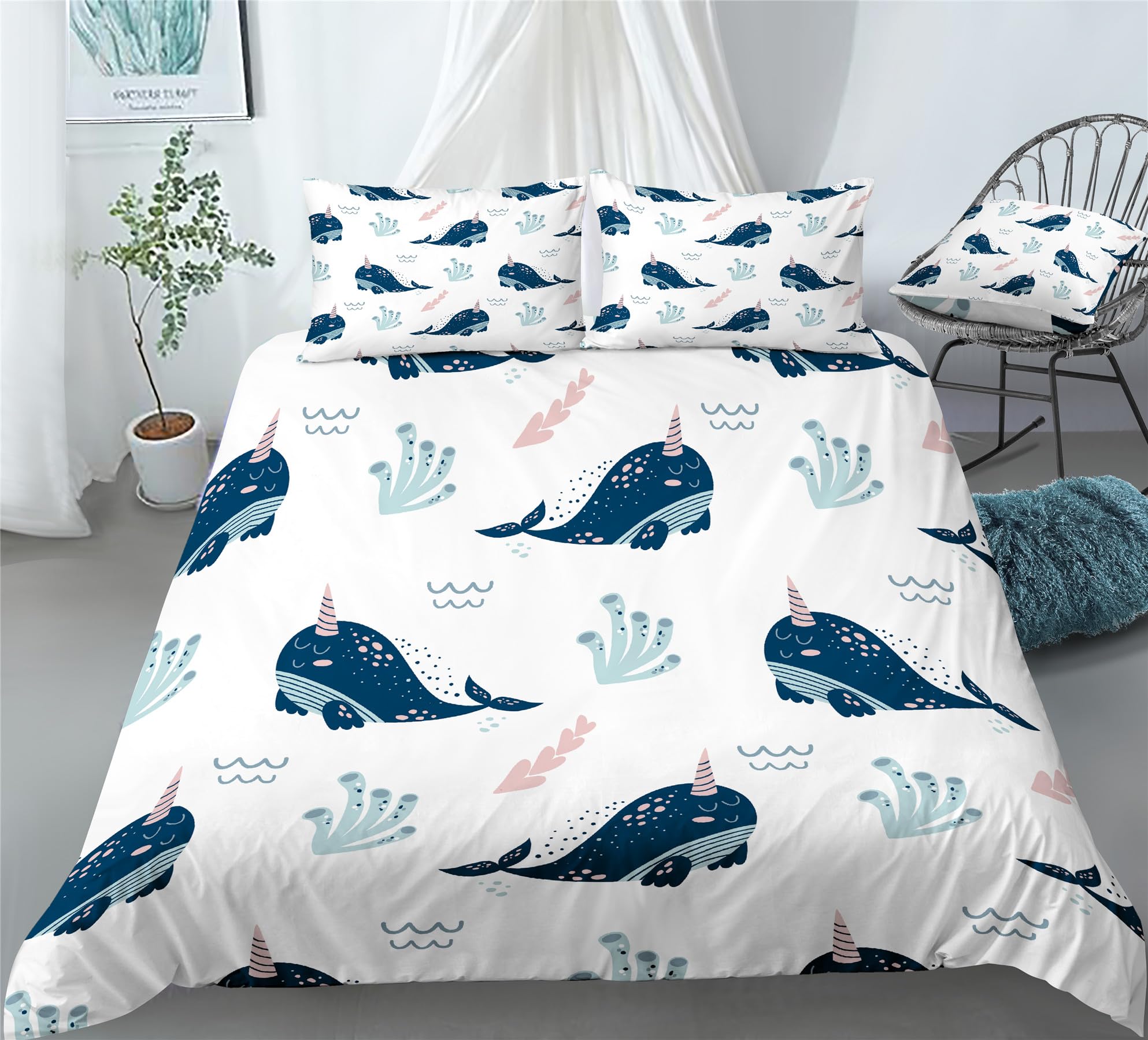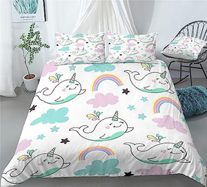BEAUTIFUL LIFESTYLE:Cute Narwhal Marine Animals, so that each child can not help but want to hold in his arms.Give the colors a dull room needs,our beautiful and well-designed floral patterned duvet covers add brightness and style to your home