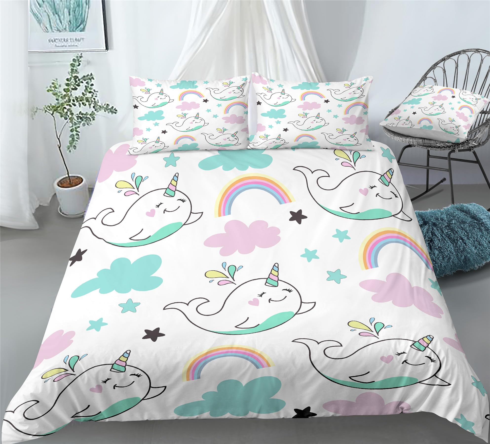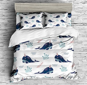 BEAUTIFUL LIFESTYLE:Cute Narwhal Marine Animals, so that each child can not help but want to hold in his arms.Give the colors a dull room needs,our beautiful and well-designed floral patterned duvet covers add brightness and style to your home