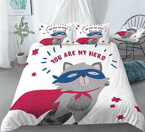 REALIN Cartoon Raccoon Bedding Raccoon Animal Print Duvet Cover Set Girl Boy Kids Bed Sets 2/3/4PCS Quilt Covers/Sheets/Pillow Shams,Twin/Full/Queen/King (A,Queen-228x228cm-4PCS)