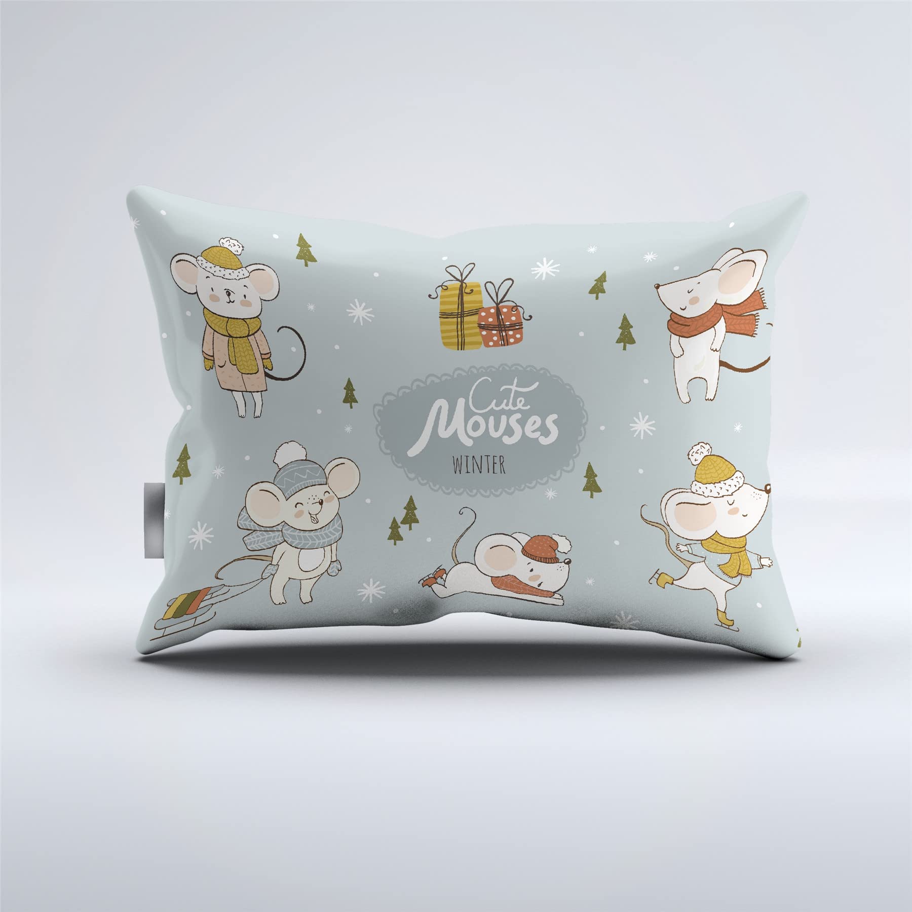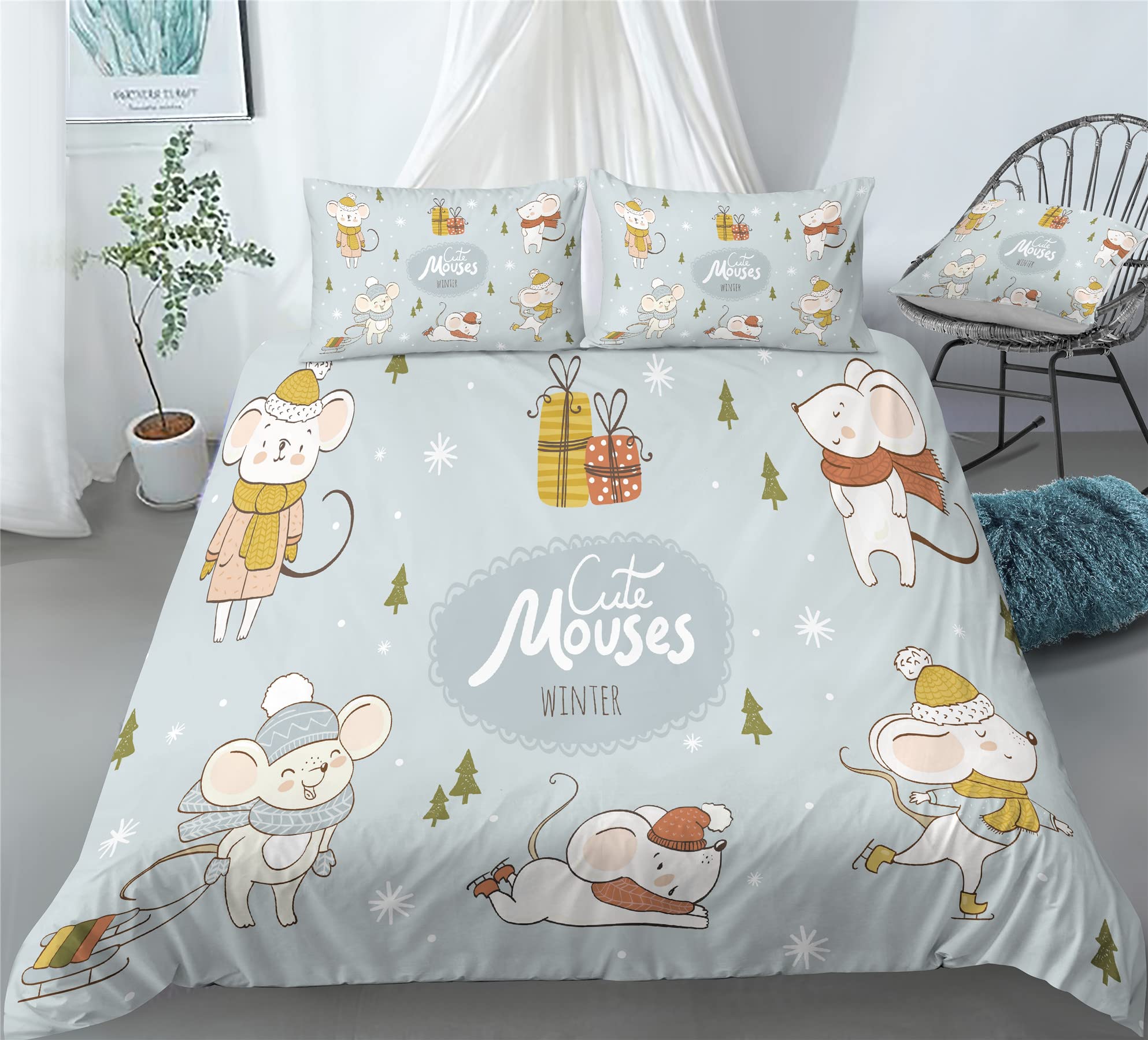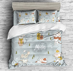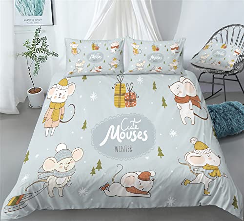 REALIN Christmas Mouse Print Duvet Cover Set Mouse Receiving Gifts Print Bedding Girl Boy Kids Bed Sets 2/3/4PCS Quilt Covers/Sheets/Pillow Shams,Twin/Full/Queen/King (C,Twin-172x218cm-3PCS)