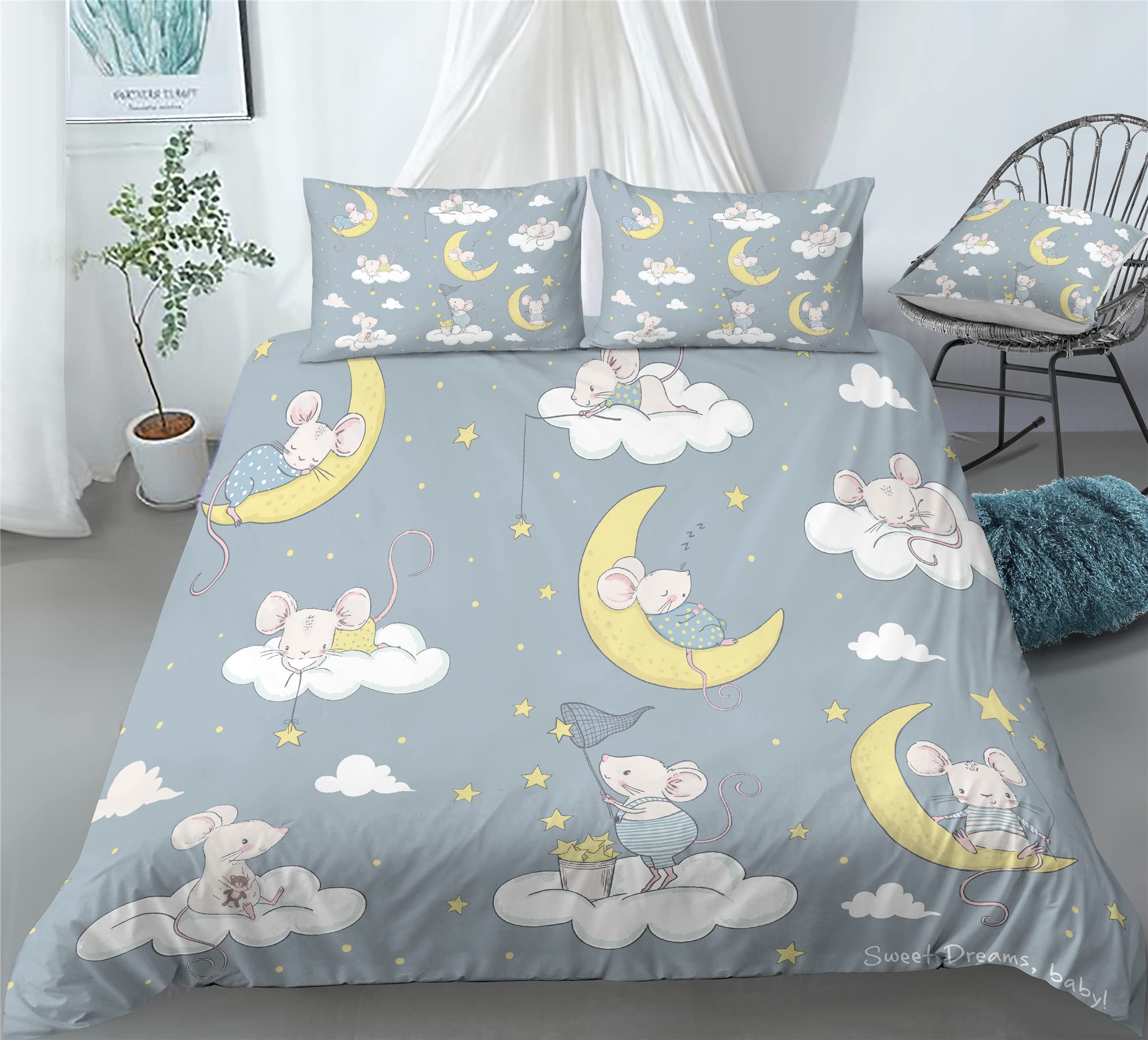 BEAUTIFUL LIFESTYLE:cartoon mouse print, so that each child can not help but want to hold in his arms.Give the colors a dull room needs,our beautiful and well-designed floral patterned duvet covers add brightness and style to your home
