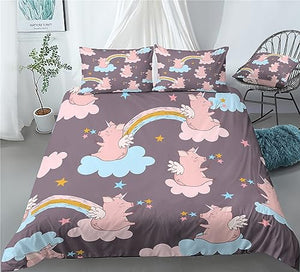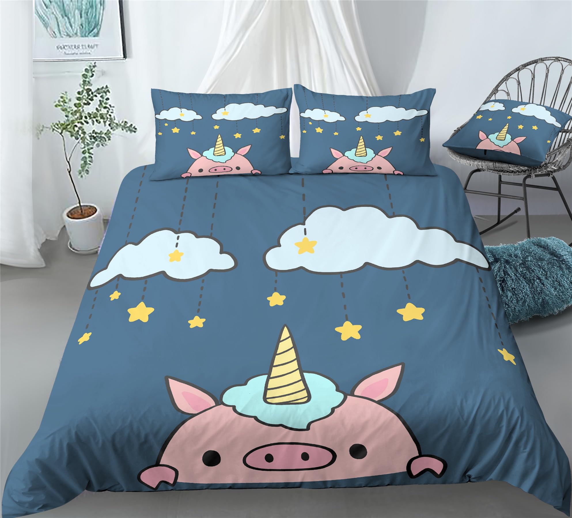 REALIN Clouds Unicorn Pig Decoration Bedding Rainbow Unicorn Pig Duvet Cover Set Girl Boy Kids Bed Sets 2/3/4PCS Quilt Covers/Sheets/Pillow Shams,Twin/Full/Queen/King (C,Twin-172x218cm-3PCS)