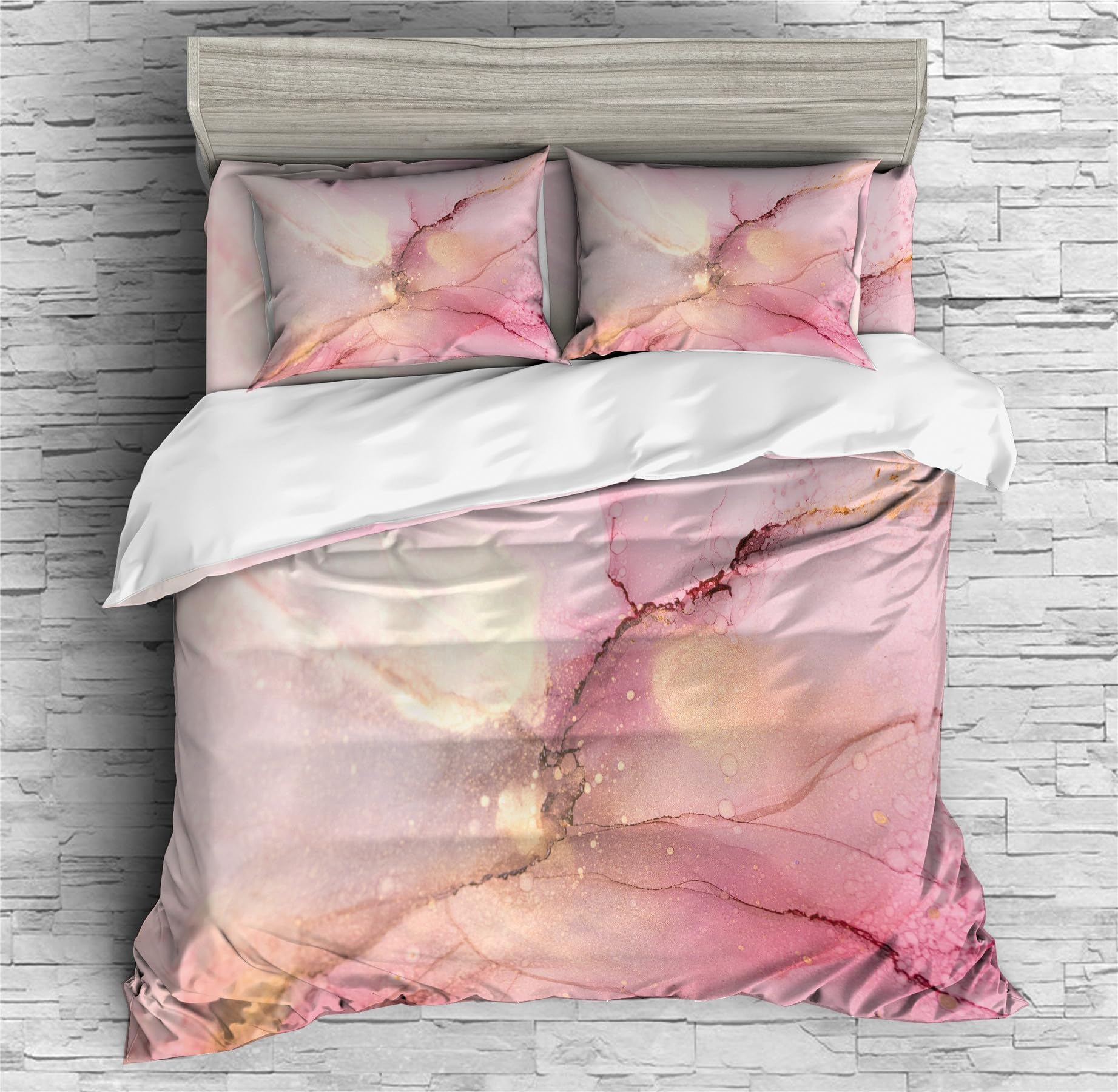 REALIN Colored Marble Bedding Pink Purple Marble Duvet Cover Set Girl Boy Kids Bed Sets 2/3/4PCS Quilt Covers/Sheets/Pillow Shams,Twin/Full/Queen/King (C,Full-200x229cm-3PCS)