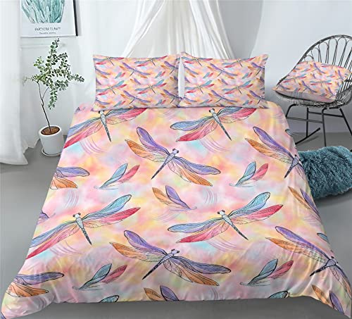 REALIN Colorful Dragonflies Bedding Aerial Spirits Dragonfly Duvet Cover Set Girl Boy Kids Bed Sets 2/3/4PCS Quilt Covers/Sheets/Pillow Shams,Twin/Full/Queen/King (C,Queen-228x228cm-4PCS)