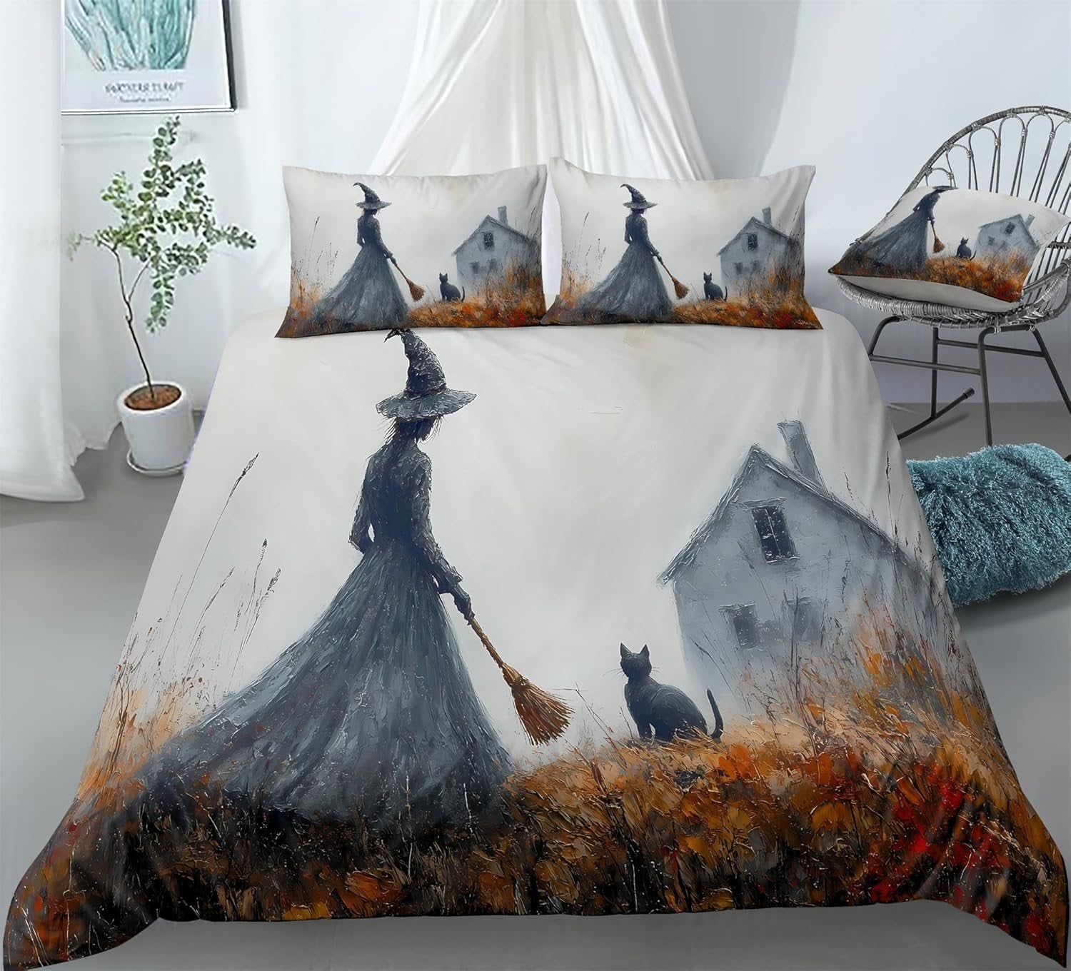 REALIN Colorful Retro Witch Print Duvet Cover Set Mystic Witch Art Bedding Girl Boy Kids Bed Sets 3/4PCS Quilt Covers/Sheets/Pillow Shams,Twin/Full/Queen/King (A,King-229x259cm-3PCS)
