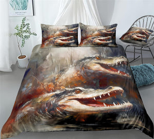 REALIN Crocodile Bedding Crocodile Opening Its Bloody Mouth Duvet Cover Set Girl Boy Kids Bed Sets 2/3/4PCS Quilt Covers/Sheets/Pillow Shams,Twin/Full/Queen/King (B,Twin-172x218cm-4PCS)