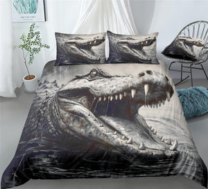 REALIN Crocodile Duvet Cover Set Crocodile Opening Its Bloody Mouth Bedding Girl Boy Kids Bed Sets 2/3/4PCS Quilt Covers/Sheets/Pillow Shams,Twin/Full/Queen/King (C,King-229x259cm-3PCS)