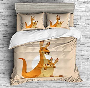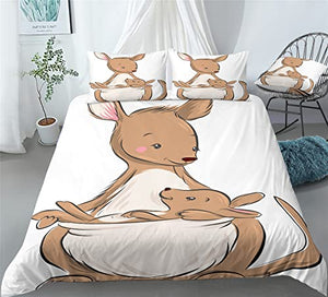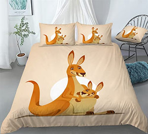 REALIN Cute Cartoon Animal Kangaroo Duvet Cover Set Kangaroo Print Bedding Girl Boy Kids Bed Sets 2/3/4PCS Quilt Covers/Sheets/Pillow Shams,Twin/Full/Queen/King (A,Queen-228x228cm-4PCS)