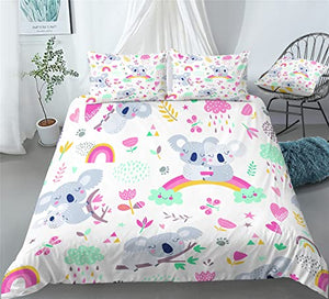 REALIN Cute Koala Duvet Cover Set Rainbow Clouds Children Bedding Girl Boy Kids Bed Sets 2/3/4PCS Quilt Covers/Sheets/Pillow Shams,Twin/Full/Queen/King (B,Queen-228x228cm-3PCS)