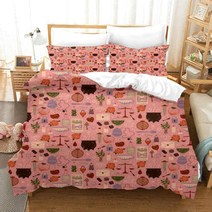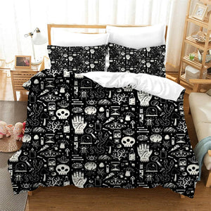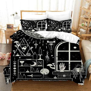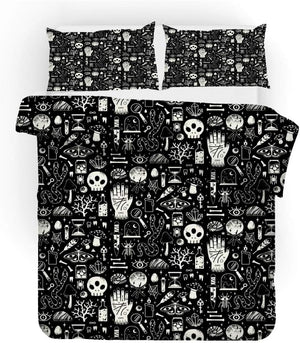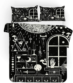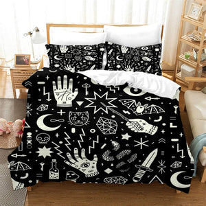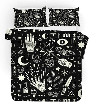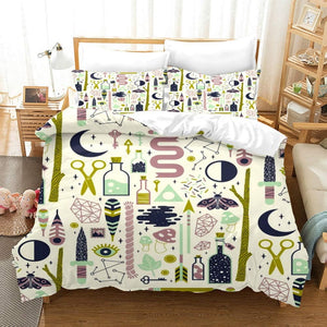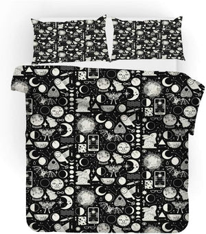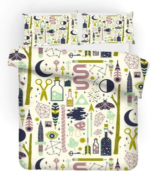 REALIN Divination Series Duvet Cover Set Witchcraft Bedding Cartoon Little Pattern Bed Sets 2/3/4PCS Quilt Covers/Sheets/Pillow Shams,Twin/Full/Queen/King (D,Twin-172x218cm-3PCS)