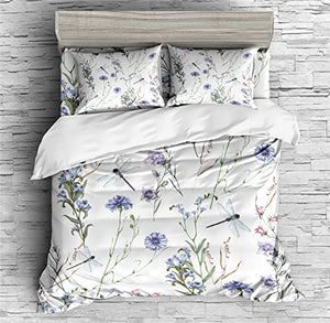 REALIN Flower Dragonfly Pattern Bedding Cartoon Dragonflies Duvet Cover Set Girl Boy Kids Bed Sets 2/3/4PCS Quilt Covers/Sheets/Pillow Shams,Twin/Full/Queen/King (A,Full-200x229cm-3PCS)