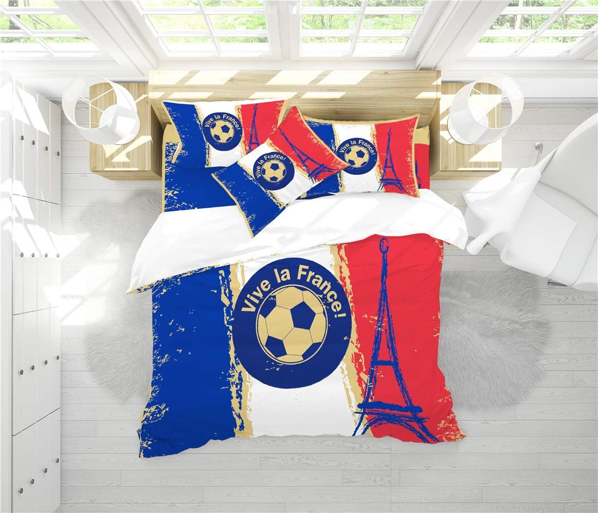 REALIN France National Men's Football Team Duvet Cover Set Soccer Ball Bedding Balls Sports Bed Sets 2/3/4PCS Quilt Covers/Sheets/Pillow Shams,Twin/Full/Queen/King (B,Full-200x229cm-4PCS)