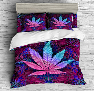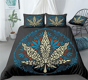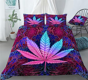 REALIN Marijuana Duvet Cover Set Hemp Plant Green Hemp Leaf Prints Bedding Girl Boy Kids Bed Sets 2/3/4PCS Quilt Covers/Sheets/Pillow Shams,Twin/Full/Queen/King (A,Queen-228x228cm-4PCS)