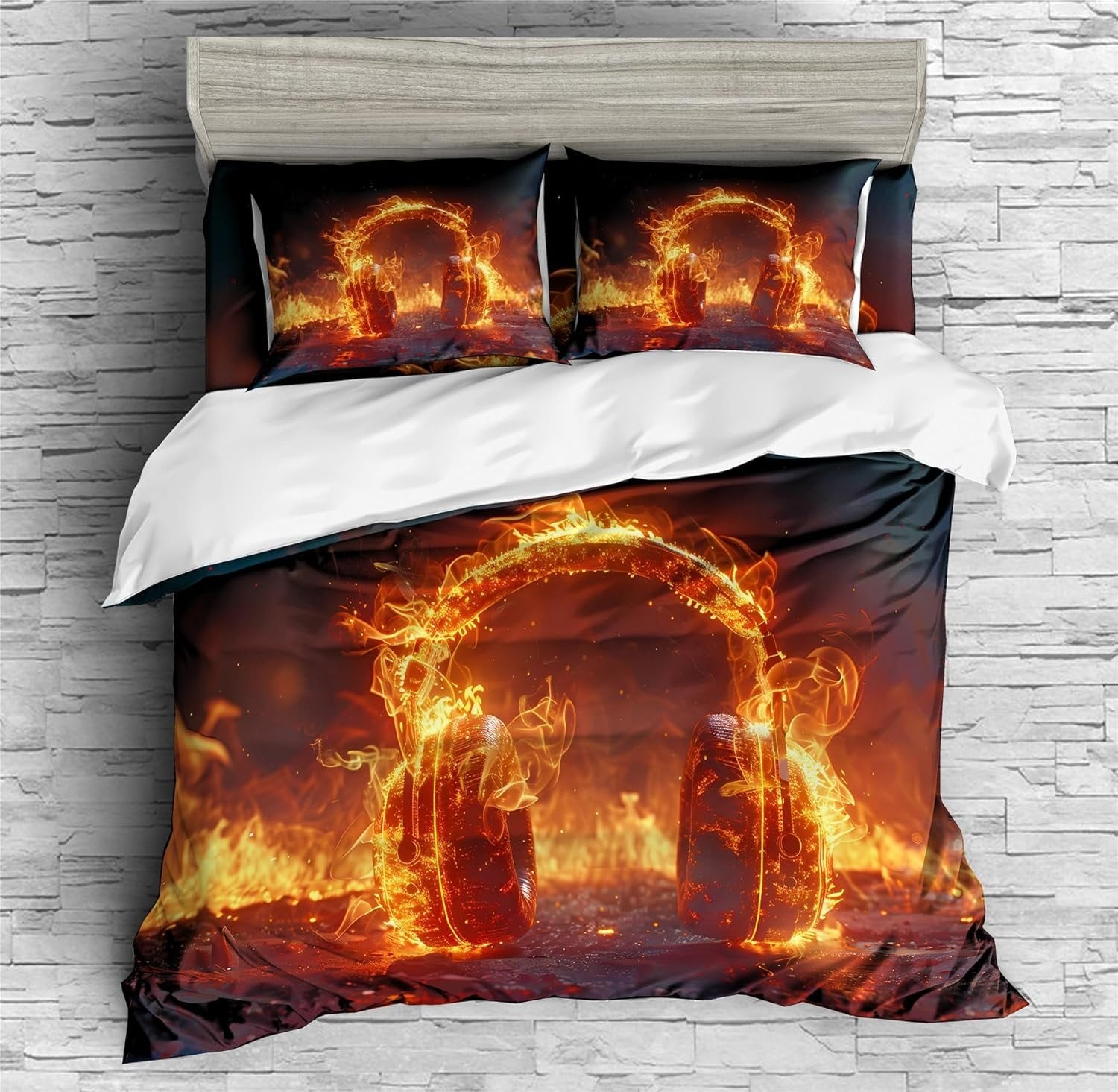 REALIN Modern Music Music Headphones Bedding Music Lover Duvet Cover Set Girl Boy Kids Bed Sets 3/4PCS Quilt Covers/Sheets/Pillow Shams,Twin/Full/Queen/King