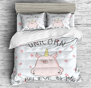 REALIN Moon Universe Unicorn Pig Duvet Cover Set Unicorn Pig Bedding Girl Boy Kids Bed Sets 2/3/4PCS Quilt Covers/Sheets/Pillow Shams,Twin/Full/Queen/King (A,Full-200x229cm-3PCS)