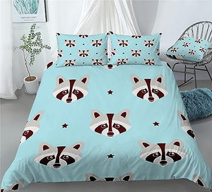 REALIN Raccoon Bedding Baby Raccoon Small Animal Jungle Duvet Cover Set Girl Boy Kids Bed Sets 2/3/4PCS Quilt Covers/Sheets/Pillow Shams,Twin/Full/Queen/King (B,Twin-172x218cm-4PCS)