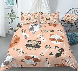 BEAUTIFUL LIFESTYLE:Cartoon Raccoon Animal, so that each child can not help but want to hold in his arms.Give the colors a dull room needs,our beautiful and well-designed floral patterned duvet covers add brightness and style to your home