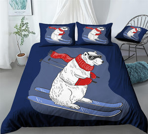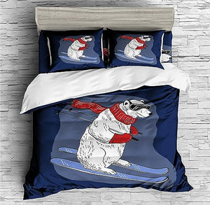 REALIN Ski Polar Bear Skiing Duvet Cover Set Ski Area Skiing Sports Bedding Girl Boy Kids Bed Sets 2/3/4PCS Quilt Covers/Sheets/Pillow Shams,Twin/Full/Queen/King (B,King-229x259cm-3PCS)
