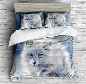 REALIN Snow Fox Animals Duvet Cover Set Arctic Fox Wildlife Bedding Girl Boy Kids Bed Sets 2/3/4PCS Quilt Covers/Sheets/Pillow Shams,Twin/Full/Queen/King (A,Queen-228x228cm-4PCS)