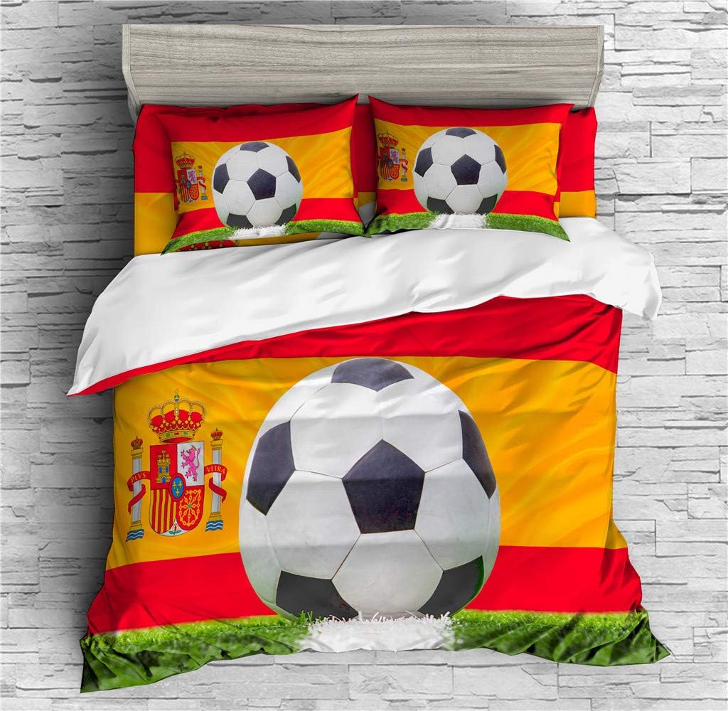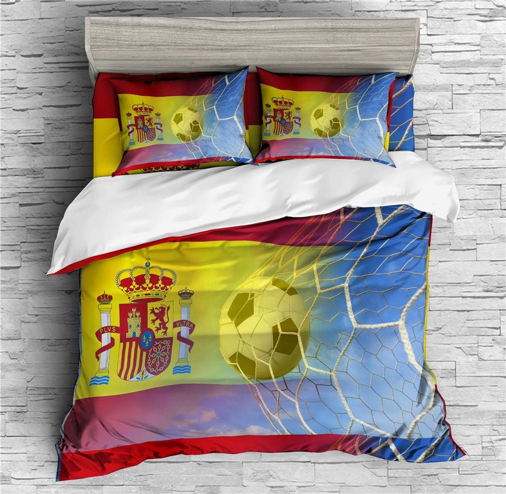 REALIN Spain Flags Duvet Cover Set Football Competition Bedding Fans Bed Sets 2/3/4PCS Quilt Covers/Sheets/Pillow Shams,Twin/Full/Queen/King (C,King-229x259cm-3PCS)