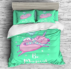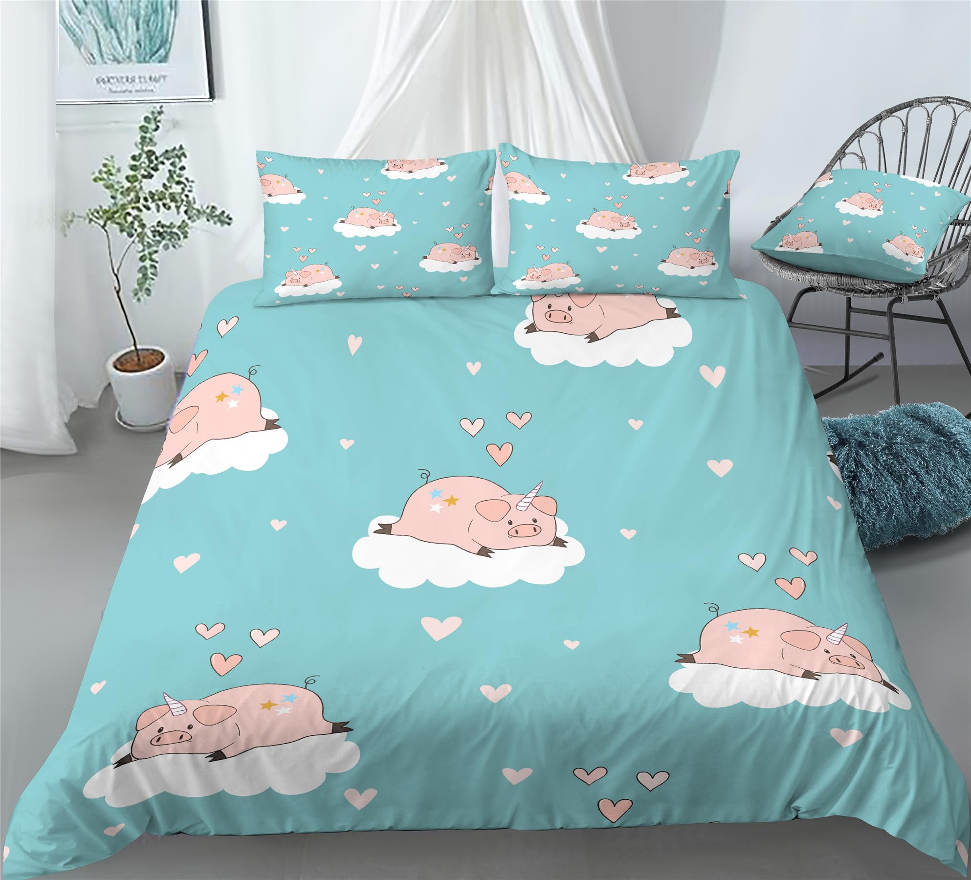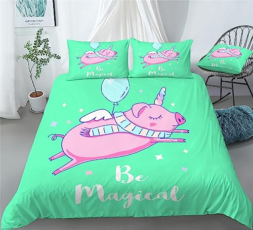 REALIN Unicorn Pig Rainbow Prints Duvet Cover Set Unicorn Pig Animal Bedding Girl Boy Kids Bed Sets 2/3/4PCS Quilt Covers/Sheets/Pillow Shams,Twin/Full/Queen/King (B,Twin-172x218cm-3PCS)