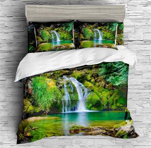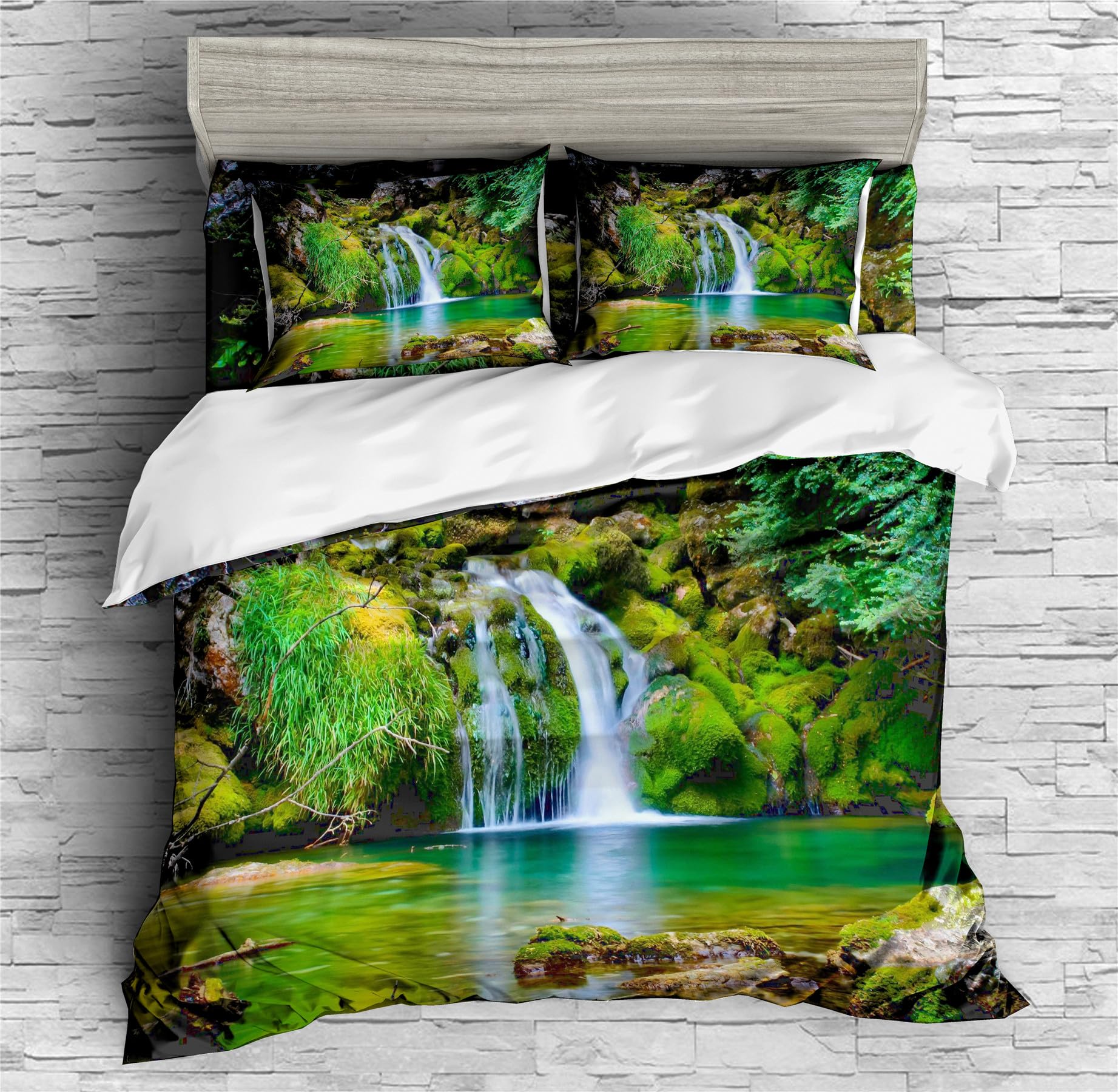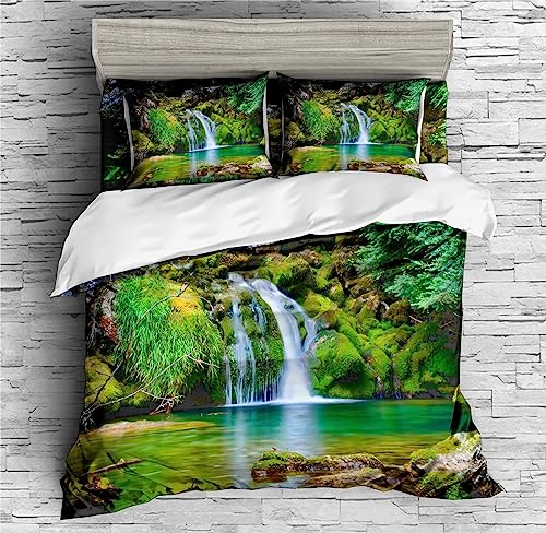 REALIN Waterfalls Woods Duvet Cover Set Wonderland Forest Fantasy Woods Bedding Girl Boy Kids Bed Sets 2/3/4PCS Quilt Covers/Sheets/Pillow Shams,Twin/Full/Queen/King (A,Full-200x229cm-4PCS)
