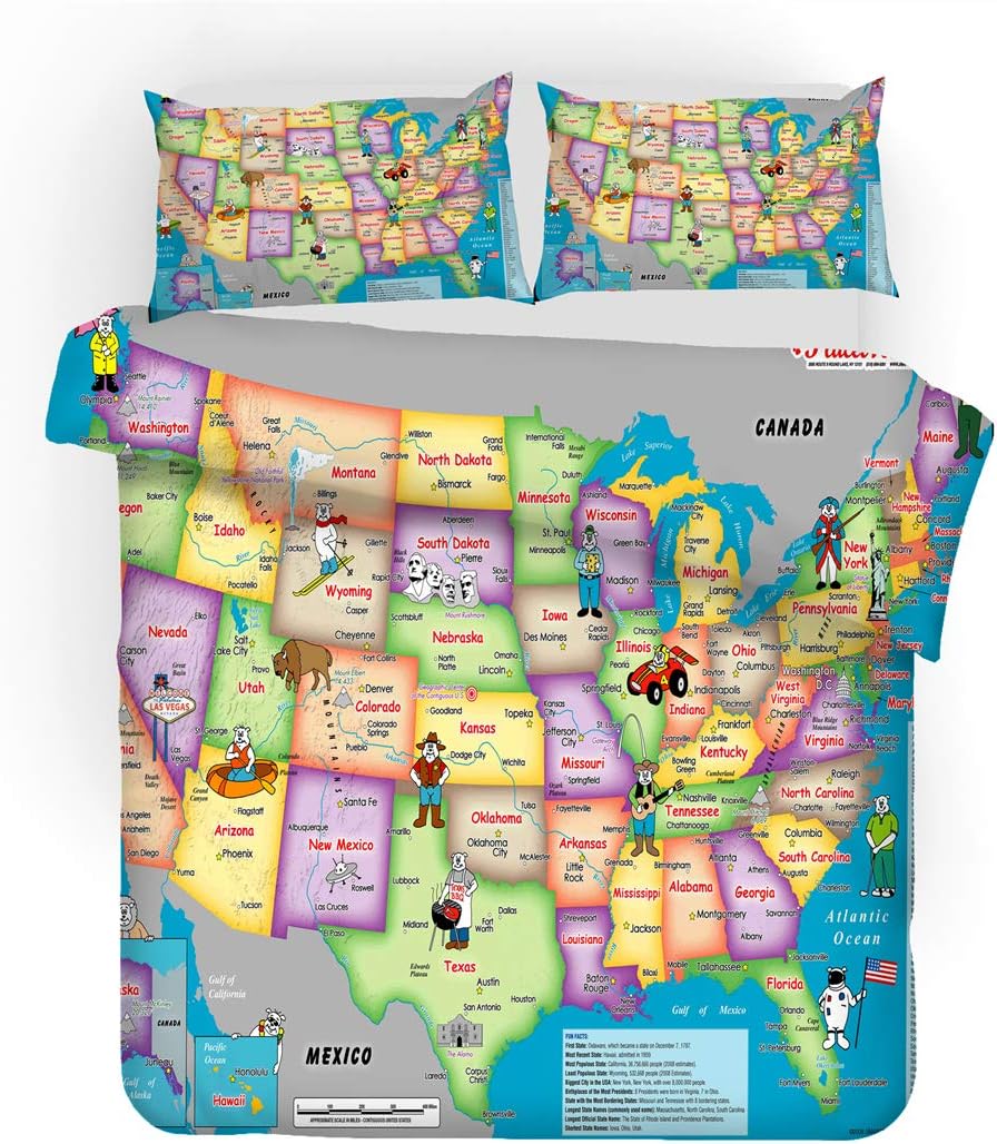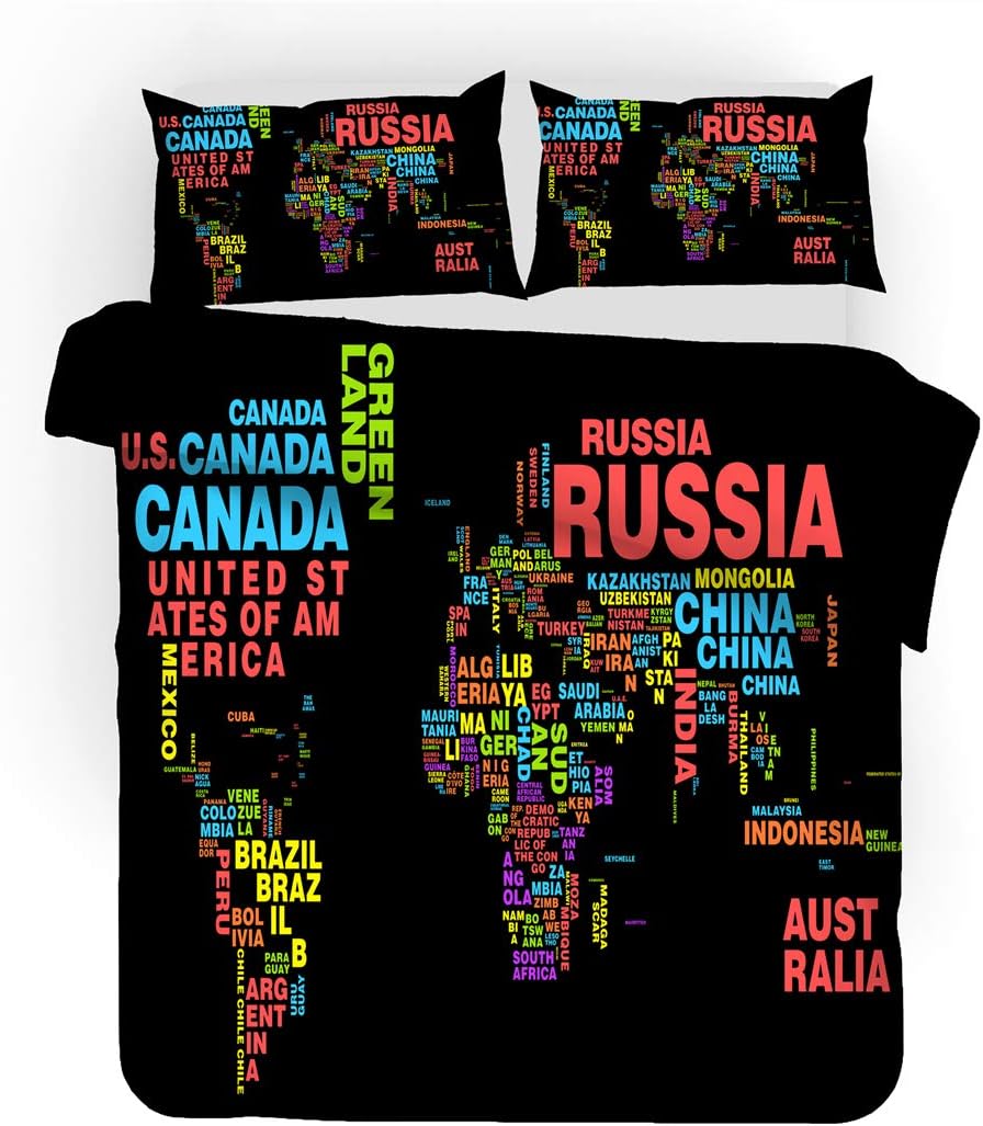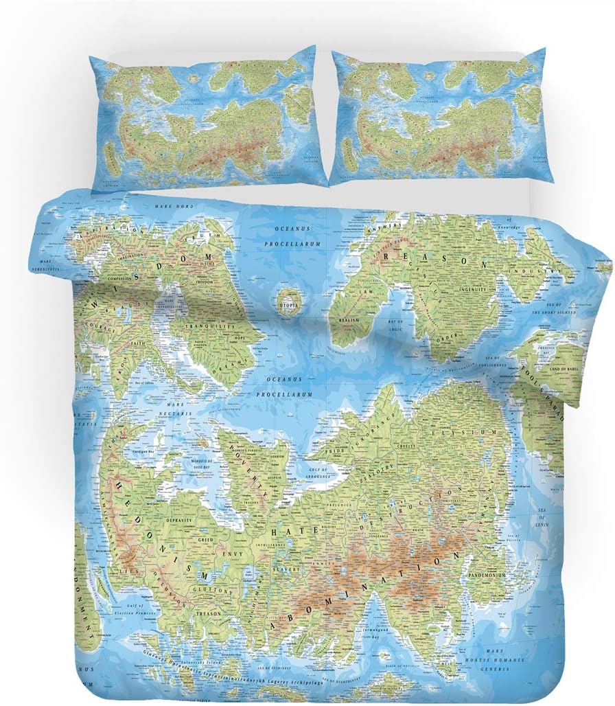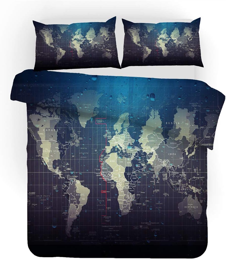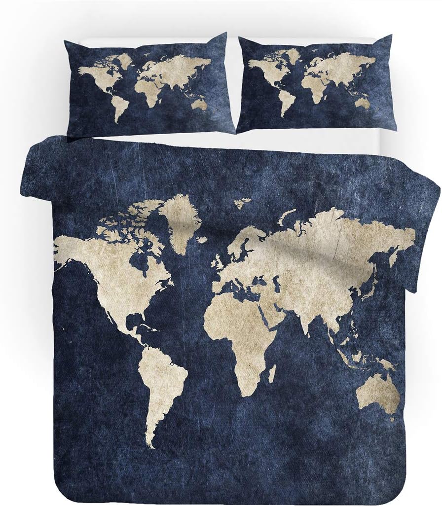 REALIN World Map Duvet Cover Set 3D Bedding Warp and Weft Net Geography Bed Sets 2/3/4PCS Quilt Covers/Sheets/Pillow Shams,Twin/Full/Queen/King (Queen-228x228cm-3PCS,A)
